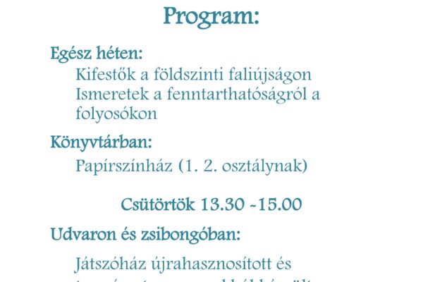 Víz világnapja március 22. Mint ahogyan már hagyomány iskolánkban, idén is megrendeztük a víz világnapja alkalmából hirdetett fotópályázatot. A pályázatra készített diákfotókat vízben élő állatok vagy növények témakörben vártuk Bea nénivel. Kikötés volt, hogy saját maguk által készített fényképekkel pályázhatnak a gyerekek. A felső tagozatos tanulók nagy számban küldtek igényes képeket a versenyre. A zsűri…