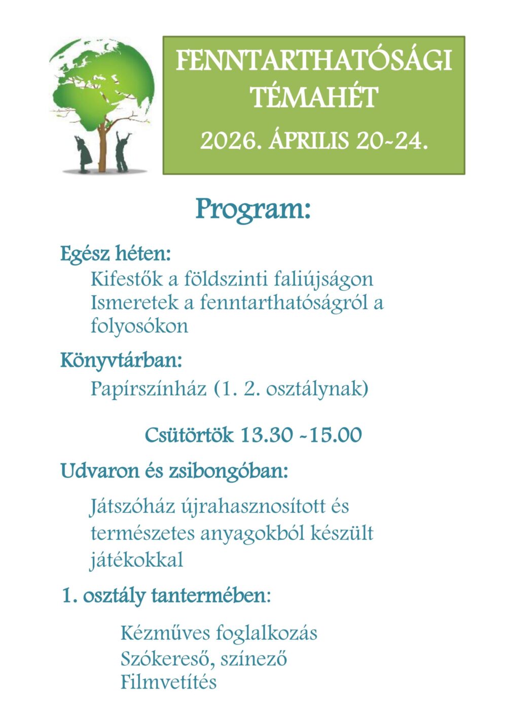 Hirdetmény/OznámenieFenntarthatósági Témahét/Týždeň udržateľnosti mlynkysuliáprilis 17, 2026április 17, 202600 min Bejegyzés navigáció Előző: Projektmunka hetedikben/Projektová práca v siedmom ročníkuKövetkező: Felhívás/Výzva