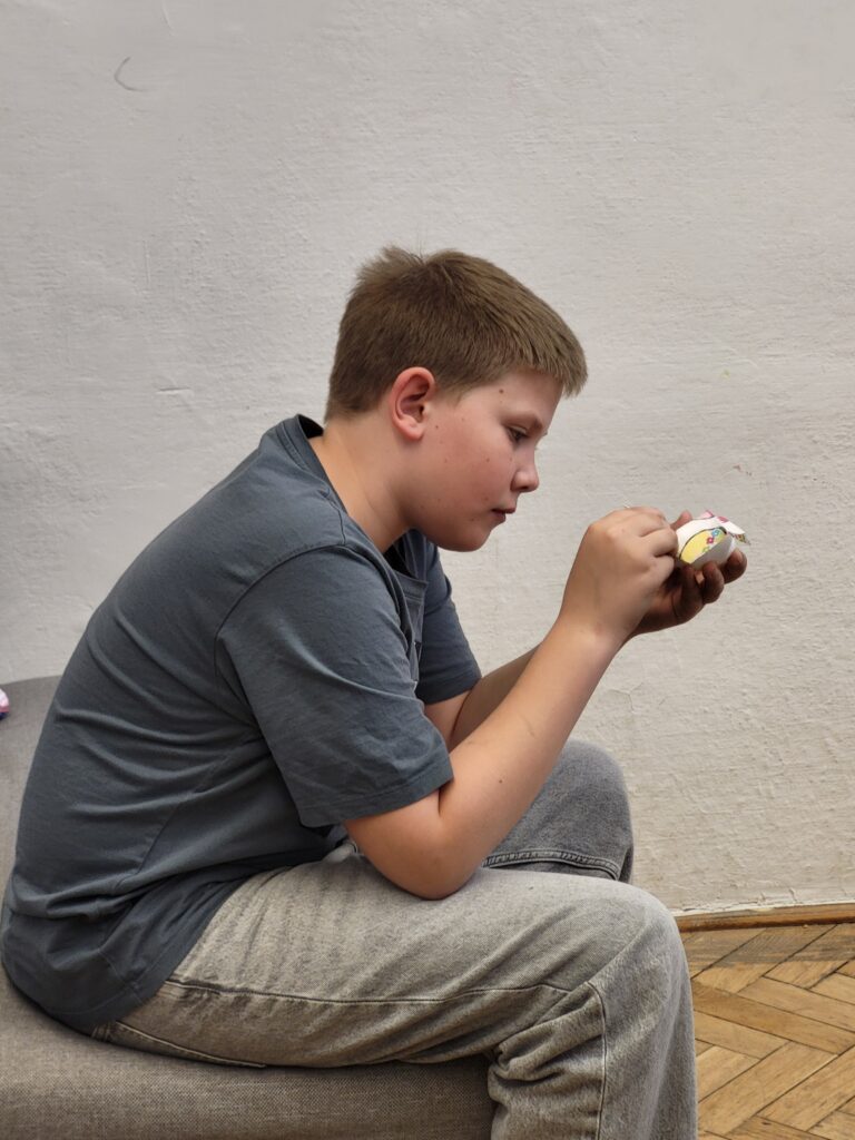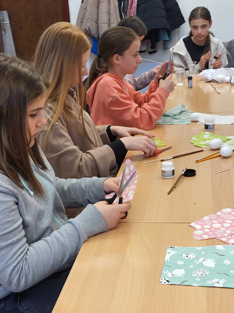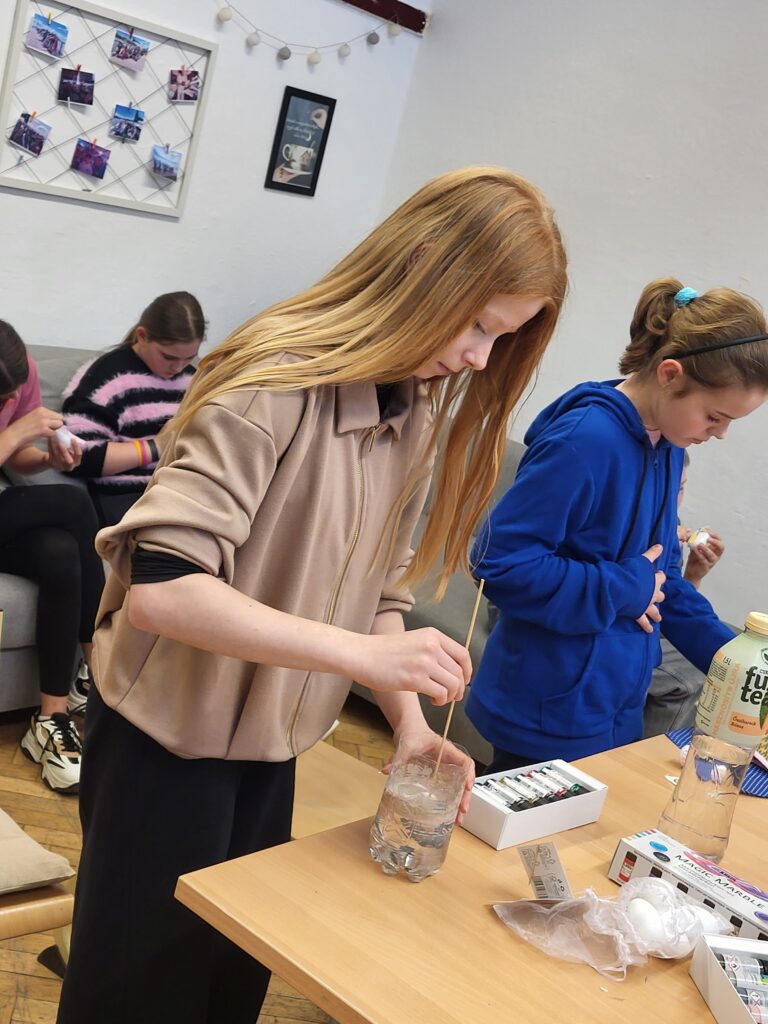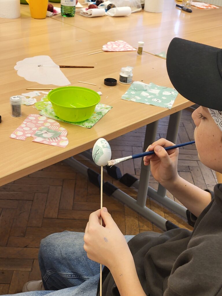 Žiaci 6. ročníka sa pripravovali na Veľkú noc, kde zdobili vajíčka rôznymi technikami. Aktivita prebiehala v príjemnej atmosfére a všetci pracovali tvorivo. Vyrábali sa tradičné kreslené červené vajíčka, vajíčka zdobené mramorovou technikou, dekupážované vajíčka aj textilné vajíčka. Žiaci si s radosťou vyskúšali nové postupy a vytvorili množstvo krásnych výrobkov.