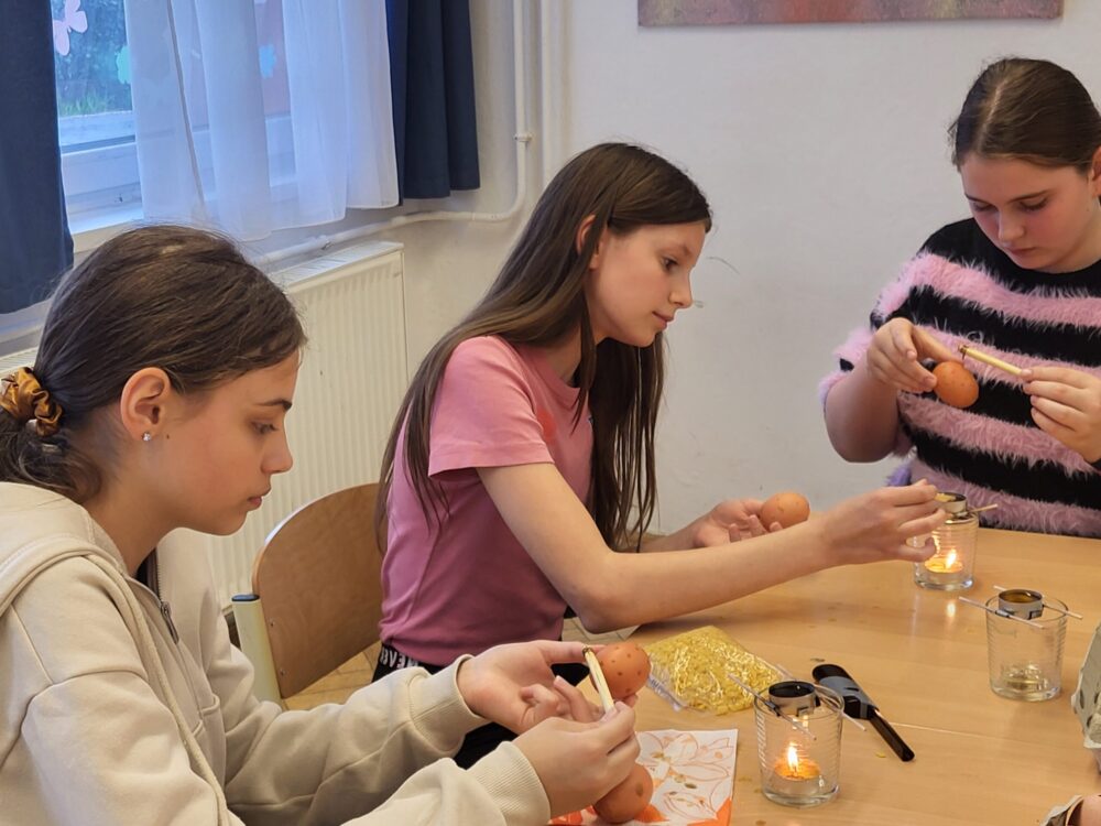 A 6. osztály húsvéti készülődést tartott, ahol a diákok különböző technikákkal díszítették a tojásokat. A foglalkozás jó hangulatban telt, mindenki kreatívan dolgozott. Készültek hagyományos, rajzolt piros tojások, márványfestékkel díszített tojások, dekopázsolt tojások, valamint textiltojások is. A tanulók örömmel próbálták ki az új módszereket, és szebbnél szebb alkotások születtek.