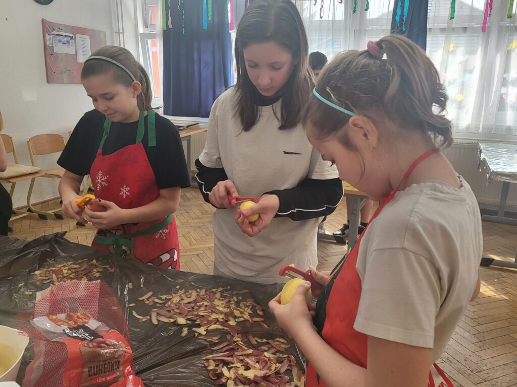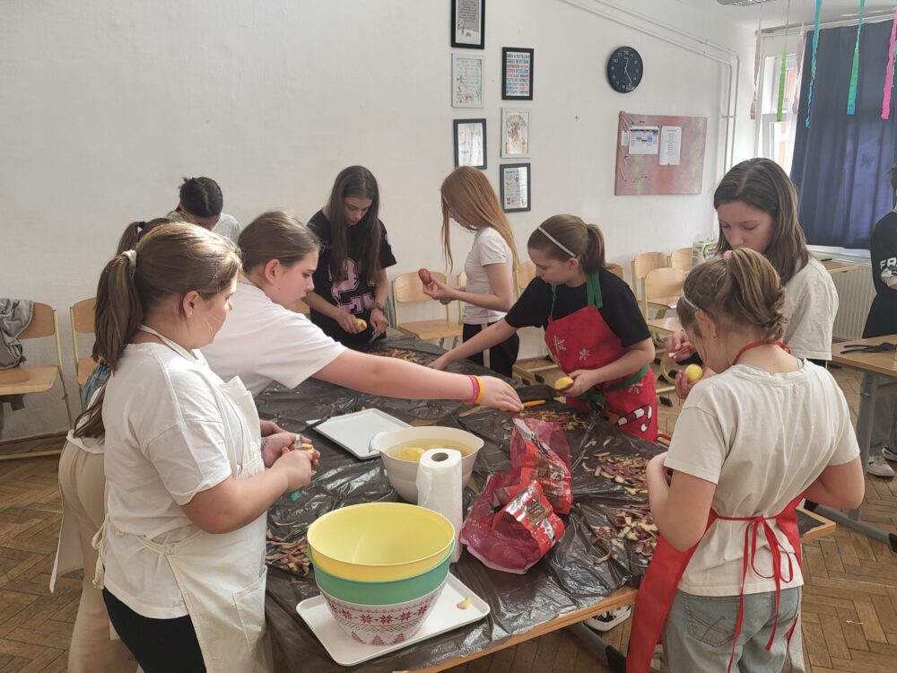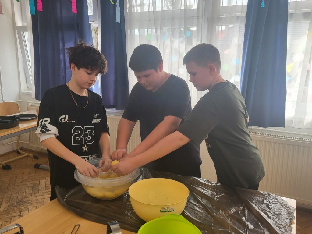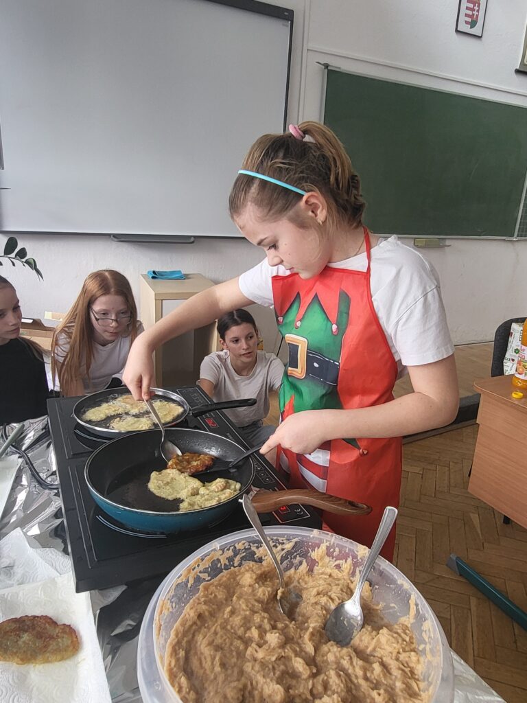 2026. március 4-én a szlovák nemzetiségi szakkör hatodik osztályos tanulói krumplovníkot sütöttek. A gyerekek aktívan dolgoztak: reszelték a krumplit, előkészítették az alapanyagokat, majd közösen megsütötték az ételt. A választás azért esett erre a fogásra, mert a pilisszentkereszti szlovákok hagyományos étele, így a főzés egyben hagyományőrző és kulturális betekintést is jelentett számukra. A végén együtt fogyasztották el a finom krumplovníkokat.