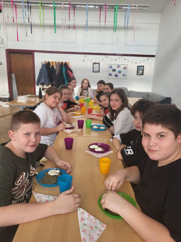 4. marca 2026 žiaci šiesteho ročníka piekli krumplovníky na slovenskom národnostnom krúžku. Aktívne sa zapojili do práce – strúhali zemiaky, pripravovali suroviny a spoločne piekli. Toto jedlo si vybrali preto, lebo je to tradičné jedlo v Mlynkoch, takže pečenie pre nich znamenalo aj zachovávanie tradícií a kultúrny pohľad do miestnych zvykov. Na záver si krumplovníky spolu vychutnali.