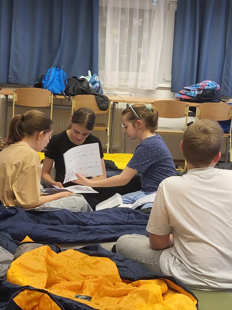 Az este közös vacsorával kezdődött, ahol mindenki együtt hangolódott a programokra. Ezt követően sem unatkozott senki: volt pingpong, foci és zenehallgatás is, így mindenki megtalálta a kedvére való kikapcsolódást. Fél kilenckor indult az este legizgalmasabb része: egy húsvéti, szabadulós, kódfejtős kaland. A diákok játékos feladatokon keresztül oldották meg a rejtvényeket, miközben csapatban dolgozva haladtak előre a kihívásokon. A jókedv és az együttműködés végig garantált volt! A mozgalmas estét egy hangulatos éjszakai mozizás zárta, amely tökéletes lezárása volt ennek az élményekkel teli programnak.