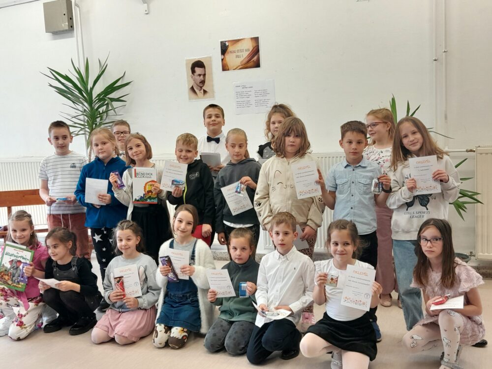 Pri príležitosti Dňa maďarskej poézie sme 14. apríla 2026 zorganizovali recitačnú súťaž pre žiakov prvého stupňa základnej školy. Dvadsať súťažiacich potešilo publikum svojím prednesom. Všetkým recitátorom ďakujeme za účasť! Blahoželáme víťazom!